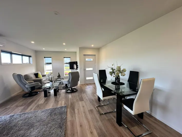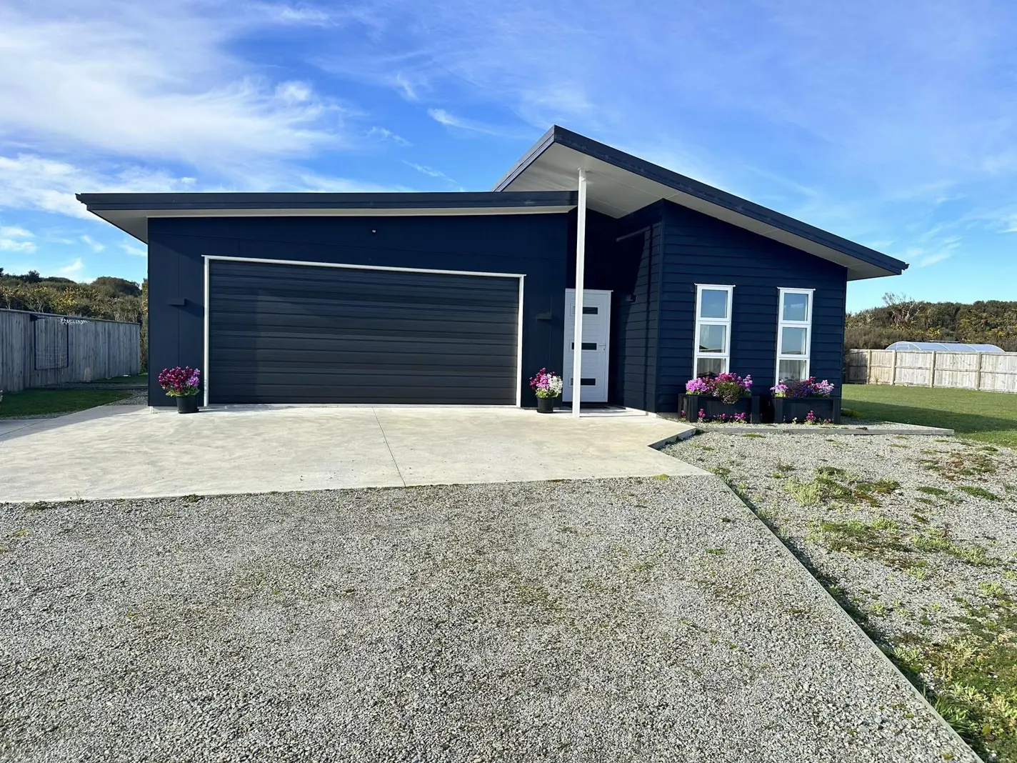 Experience contemporary comfort in this stunning home located in a new subdivision on the outskirts of Hokitika. Featuring an open plan kitchen and living area with French doors opening onto a patio, this home is perfect for relaxed living and entertaining. The property boasts two double bedrooms and master bedroom with ensuite, WIR and French door opening out onto a north facing patio. Along the hallway is the well appointed family bathroom and the laundry is tucked away behind sliding doors. A double garage with internal access and automatic door completes this modern home, offering ease and functionality.