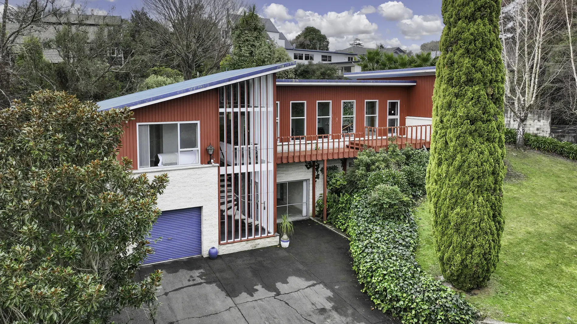This aesthetically designed home was inspired by the owners love for Austrian Alpine style. The home has been designed to consider the contour of the hillside, split over several levels to capture sun and views. The main entrance and stairway are the feature of the house with glass spanning the full height of the home. There are three bedrooms, two bathrooms. Well positioned for year around sun. The lounge steps up to a dining area, kitchen and extra sitting room. The ground level offers two rooms separate to the entrance that have been used as a business. Single integral garage. With a large well planted private section this home has good bones. Walking distance to the village and close to all Havelock Schools. The home is looking for someone that can see the potential and take it to the next level. A great Havelock North address with a contemporary feel. A must view. Tender closes 4pm, Thursday 11th August 2022