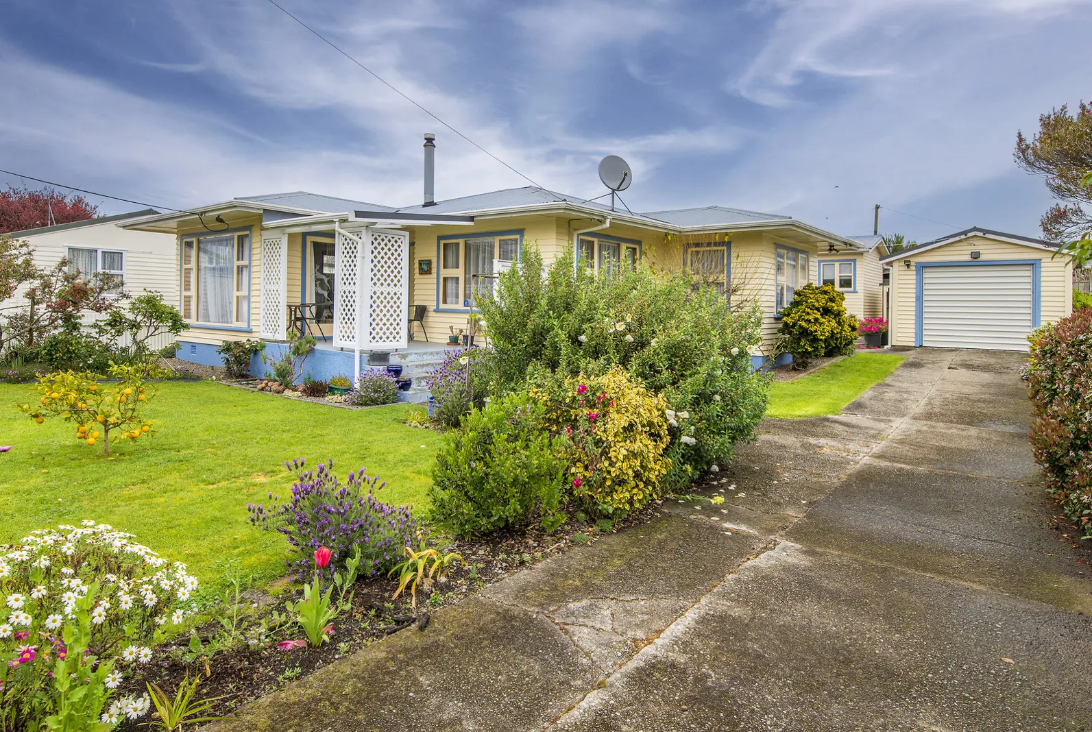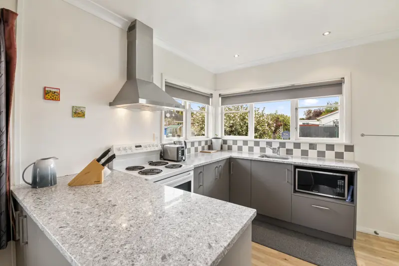 This cosy but spacious recently rewired two bedroom home with wood burner and heat transfer systems is insulated top and bottom. The kitchen and bathroom have both been upgraded, along with new carpet. The north facing lounge receives plenty of sun with French doors that open onto a lovely patio area. This light and bright home is set on 911m2 and includes a separate studio and single car garage with workshop area.