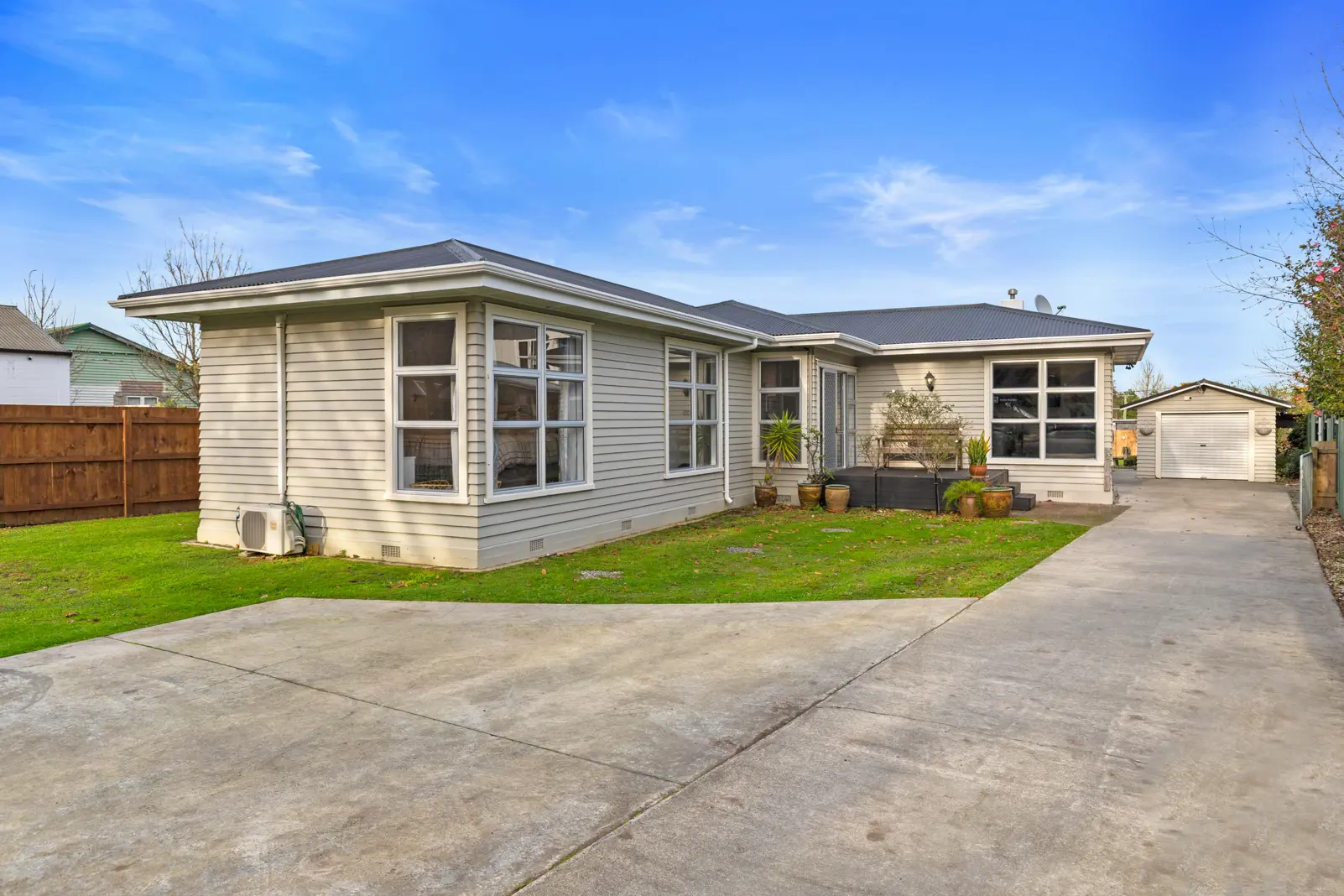 Oozing with street appeal, this home is located within easy walking distance of all levels of local schooling. Set on a large fully fenced section, this home really is a must see for busy young families. Astute purchasers will no doubt note that there could be future development options, however families will appreciate the large covered outdoor area and the space on offer for the kids and pets to play safely for hours on end. Further to this, a generously-sized single garage with a new roof and alarm system offers secure storage for all the toys and ample off-street parking with the space to park a boat or campervan. Inside, the practically designed kitchen effortlessly interconnects with the spacious open-plan dining and lounge, serviced with a heat pump, gas fire and a ventilation system. The lovely modern bathroom has been recently renovated with an eye to detail and style, whilst the separate laundry provides great storage. There are two good-sized bedrooms, with the master benefitting from a double built-in wardrobe and heat pump. A large, centrally-located office space, currently being utilised as a third bedroom, offers further potential to add value for the new owners. Freshly painted and with new carpet, there's not a lot to do here.