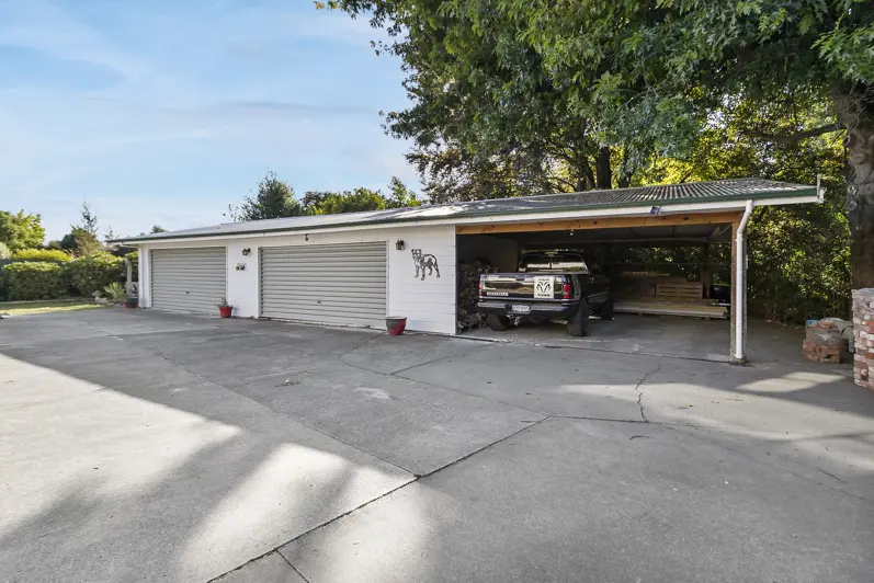 Tucked away behind a lush hedge lies a haven of tranquility awaiting your discovery. As you step onto the grounds you will experience the wow factor! Mature trees frame the landscape, and a meandering stream sets the scene for what lies beyond. Step through the front door into a foyer and on the right, you will find an enticing living room, perfect for unwinding or entertaining with an adjoining bar for hosting family and friends. Also on this lower level you will discover a main bathroom and four spacious bedrooms, including a master suite complete with an ensuite bathroom and a cozy sitting room. A side door off the hall way beckons you out to a sun-drenched patio, over- looking a landscaped garden, securely fenced for your kiddies or pets. Ascend the stairs to the upper level, where a spacious lounge is warmed by the sun, a heat pump and a fireplace, ensuring comfort even on the coldest winter days. To the right, a dining area awaits, with doors opening onto a small north-facing deck. The near-new kitchen has a great outlook over the grounds. Enjoy an inspiring view while you create your culinary delights. From here, gaze upon the vast expanse of the nearly acre-sized property, including the tranquil stream and the ample garaging, two doubles plus a double carport, catering for six cars This is more than just a home; it's a lifestyle upgrade, offering the ultimate blend of comfort, security and natural beauty. Don't miss your chance to make this slice of paradise your own. Contact us today to schedule a viewing and experience all this magic home has to offer. It doesn't get much better than this.