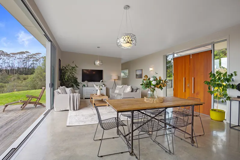 Urgent notice. Auction brought forward to Tuesday 26th October at 1.00pm onsite. Motivated vendors invite new owners to enjoy their beautiful lifestyle property. Number 54 Walford Road is a thoughtfully built modern home on 5600sqm of land with scenic views of the surrounding countryside. The home has been built with sustainability and resilience in mind, the 250mm thick Ambionse block walls provide the house an impressive R-value of 3.0. This combined with the superb northern orientation, perfectly angled roof, polished concrete floors, floor to ceiling double glazing keep the house cool in summer and warm in winter, the impressive design means you don't need additional heating or cooling. The main entryway welcomes you into the heart of the home which opens out to the front deck and panoramic rural views. Everyday life circulates around the open plan living zone, showcasing the floor to ceiling windows, stunning kitchen with stone countertops, large breakfast bar, modern appliances and a spacious walk-in pantry. Interacting with the welcoming lounge and large decking, the seamless indoor-outdoor flow is perfect for entertaining. Effort has been made to ensure all areas of the home, including the bedrooms have a connection to the outdoors. The spacious master suite is an undeniable highlight located away from the other bedrooms, it contains a huge walk-in wardrobe, ensuite and its own deck. There is a large main bathroom, with a free-standing bath and a separate toilet. The laundry is cleverly placed behind sliding glass doors, plenty of storage space and a purpose-built office nook. The house boasts both gas and electric hot water with an HRV water filtration system installed. A double carport and plenty of extra parking space, raised vegetable gardens, an array of fruit trees, blueberry bushes, a chook pen and grazing for a few sheep. Also included are three spacious sheds for the toys. There is also an additional power supply with its own meter and separate entrance.