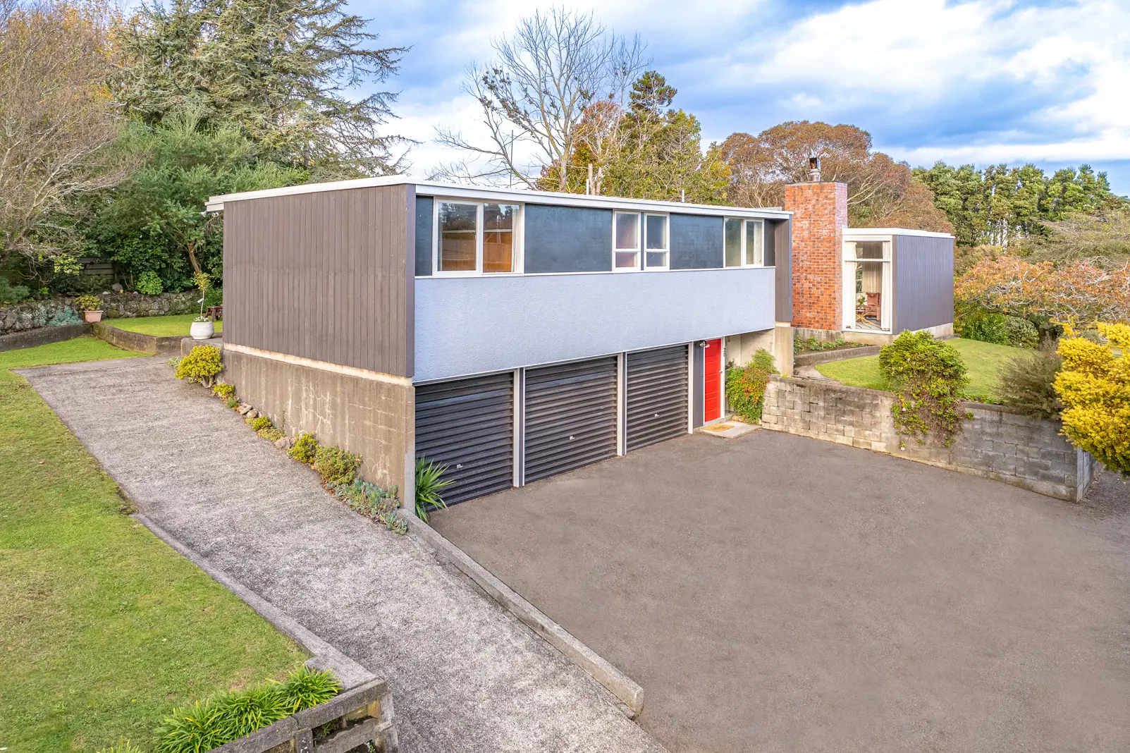 Designed by well know Whanganui award winning architect Don McCallum and set in the Turere Place Modern Houses Precinct, notable for modernist homes. You will feel the arms of this very much loved family home wrap around you as soon as you walk in. The entrance stairs lead up towards the elevated formal lounge that features ceiling to floor windows, allowing you to take in the very peaceful outlook of the surrounding trees. The integrity of this home has been maintained with many of the fabulous original features remaining including the parquet flooring in the kitchen and dining area, the wood panelling in the entrance way that cleverly hides the internal entrance to the triple car garage and the built in cabinetry throughout. The north facing kitchen is perfectly positioned to make the most of the tranquil outlook and flows to the open plan dining area. A door from there and two of the bedrooms leads out to a sheltered patio, perfect for barbeques, fun in the sun or just relaxing and watching the Tui, Kereru and Piwakawaka. The three-car garage offers additional space for the "tinkerer" of the family and there is ample additional off-street parking. If you are wanting to live in a private secluded piece of paradise in a very special home and close to town, then pick up the phone and call us today.