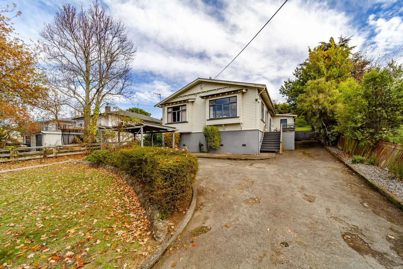 Tucked well back from the road, yet within walking distance of the park, school and shops, one may never have known this charming property even existed. Radiating all the character and craftsmanship only a home of this era can offer, it's almost stately like in interior appearance with its grand entrance hall, high stud ceilings, generous room proportions and potential to further modernise and enhance. The morning sun streams in the large picture windows of the formal front sitting room while the elevation provides a glorious tree studded view over top Waipukurau. Ever so cosy with an efficient inbuilt wood burner in the front sitting room and second free standing fire with wetback located in the spaciously open plan family living, dining and kitchen. All three bedrooms are sizable doubles, the master with own private sunroom which could easily dual as an office or nursery. Relax in the north facing sun on the deck or find a shady spot under one of the established trees on the wonderfully private rear section that encompasses just under half an acre (1798m2) over three terraces. Single garage with attached woodshed plus carport. A generous family home with so much to offer and sure to impress those wanting space, privacy and convenience of town.
