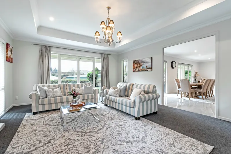 Step into sophistication with this exquisite, architecturally designed 5-bedroom residence. Spanning an expansive 1900m2 of lush grounds, this 2015 Diamond Homes masterpiece beckons. Upon arrival, the grand entrance with its elegant, tiled flooring sets a tone of luxury that pervades the entire property. The heart of the home is undoubtedly the stunning kitchen, a culinary dream with its sleek granite benchtops, fabulous walk-in pantry, and a generous open plan layout that flows seamlessly into the dining area. Relaxation is paramount in the plush lounge, where a cozy gas fire awaits to warm the soul. The home further boasts an internal vacuum system and a moisture master ventilation system, ensuring a comfortable and healthy living environment. Magnificence is in the details; from the sparkling tiled floors to the ornate chandeliers, every aspect of this home exudes class. French doors open from the living areas and bedrooms to reveal manicured lawns and charming garden patios, an idyllic setting for both intimate gatherings and grand entertaining. The master bedroom is a private sanctuary featuring a generous ensuite and a designer dressing room that will leave you in awe. Accompanying the master are four additional spacious bedrooms, each with double robes, catering to the needs of a growing family or guests. Storage is plentiful, and the comfort of efficient central heating runs throughout the house. A dual garage with space for three vehicles adds convenience with internal access. Situated a stone's throw from the Taihape township, set back from the main road, and surrounded by established trees, this tranquil retreat offers privacy and prestige. Ready to exceed expectations, 18 Wharua Road is more than a home, it's a statement of unrivalled elegance and quality. View by appointment.
